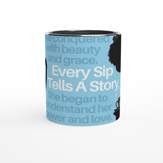 Every Sip Blue White and Black Girl Silhouette Ceramic Mug - White Inside