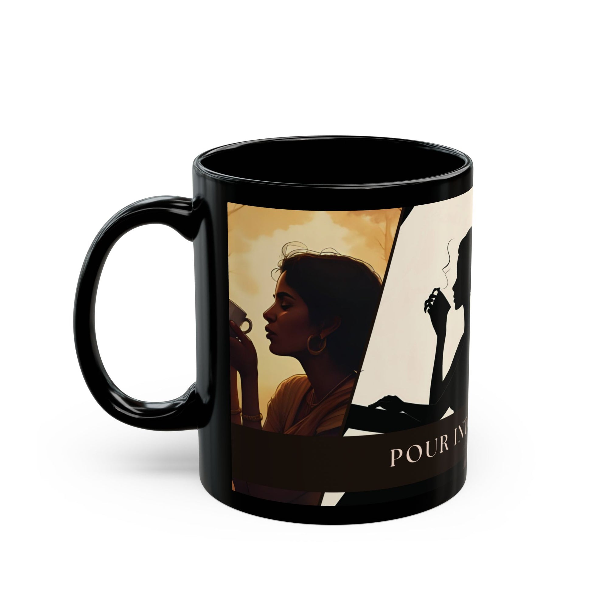 Warm morning light, slow sips, and a quiet moment that’s all yours. This black ceramic mug wraps gentle scenes of women savoring coffee and tea in silhouettes that invite calm and reflection. Whether starting a weekday or stealing an afternoon for yourself, this mug becomes a small ritual that grounds the day.